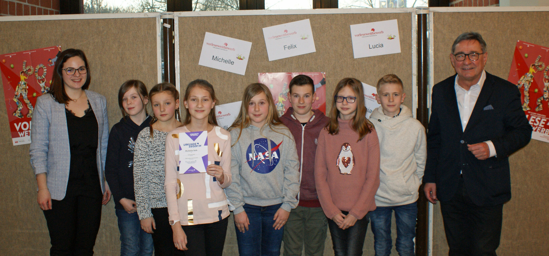 Kreisbeigeordneter und zuständiger Schuldezernent Bernd E. Lauerbach lobte bei der Siegerehrung alle Teilnehmer für ihre Bereitschaft auch in der heutigen multimedialen Welt noch ein „normales Buch“ in die Hand zu nehmen, was andere vielleicht als „uncool“ empfinden.