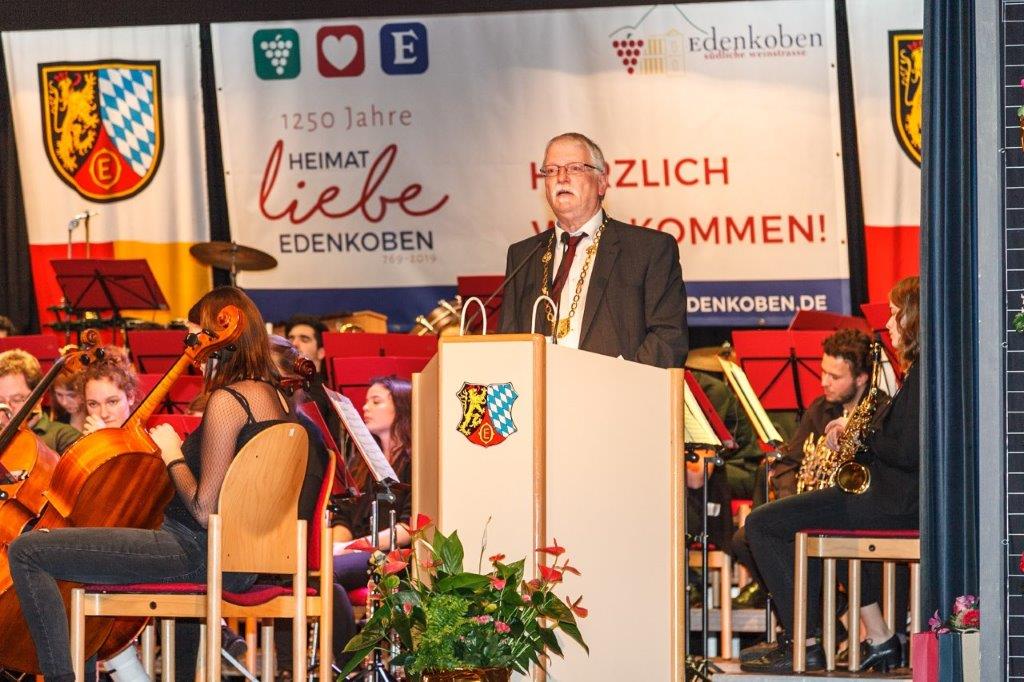 Lintz beleuchtete in seiner Rede das Jahr 2018: 200 Jahre Stadtrechte, Landesmeisterschaften des Jugendrotkreuzes, Sportlerehrung, Einweihung des Bauhofs, Umbau der Katholischen Kirche, Krönung der Edenkobener Weinprinzessin und Besuch der Partnerstädte, standen auf der Agenda.