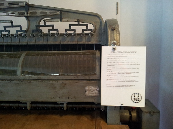 Eine im Museum ausgestellte Oberledermaschine.
