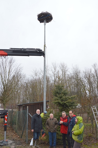Die Pfalzwerke haben das Storchennest aufegstellt, Siegfried Strobel das Grundstück bereit gestellt und  und Beate Mühlhoff leistete die fachliche Beratung.
