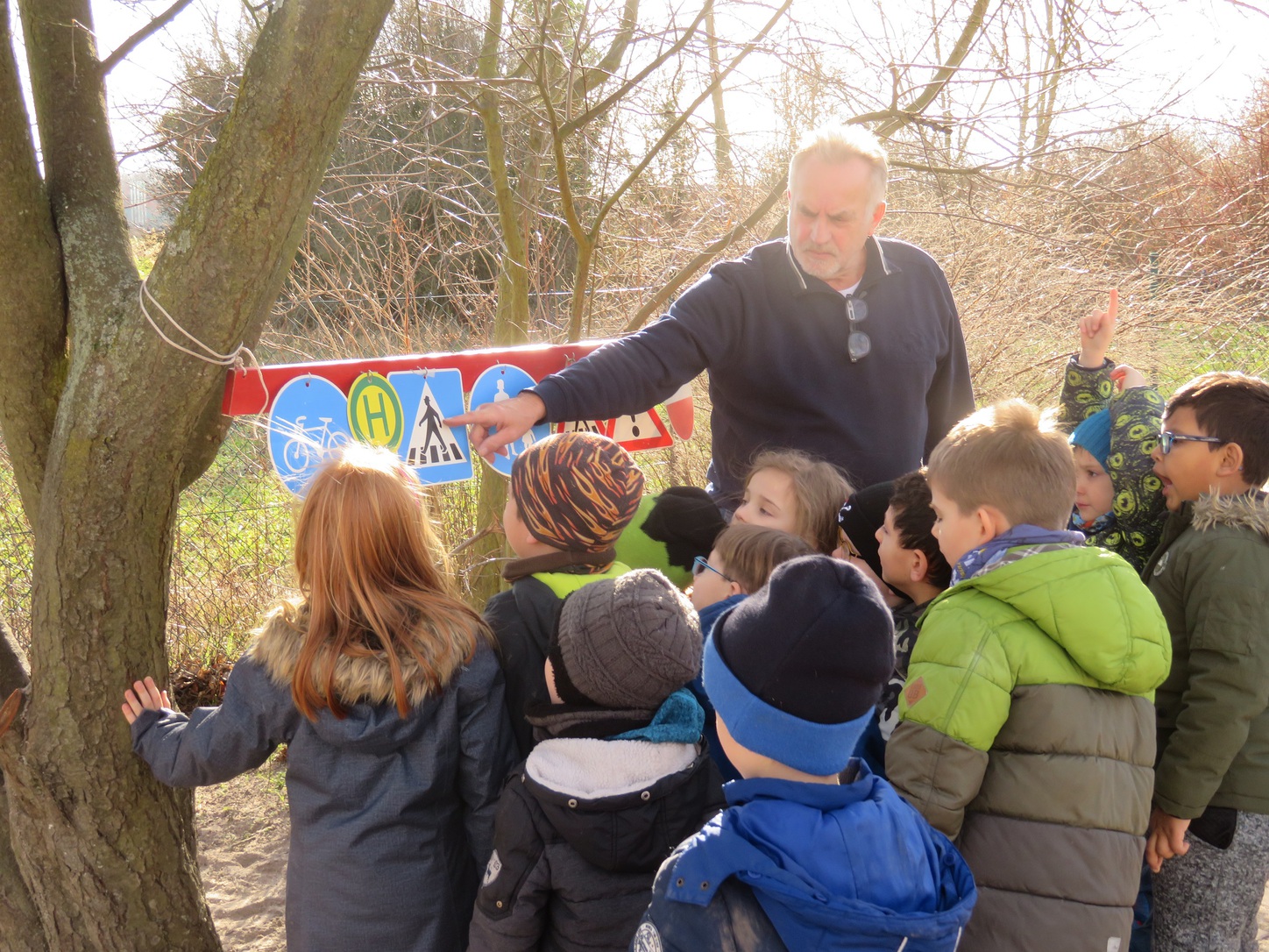 Gemeinsam mit den Erzieherinnen wurde über das richtige Verhalten im Straßenverkehr gesprochen und informiert.