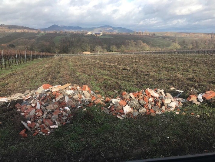 Leinweiler – Unbekannte Täter haben am 26. oder 27. Januar zirka zwei Kubikmeter Bauschutt auf einem Grundstück neben einem Wirtschaftsweg zwischen Leinsweiler und Ilbesheim entsorgt.