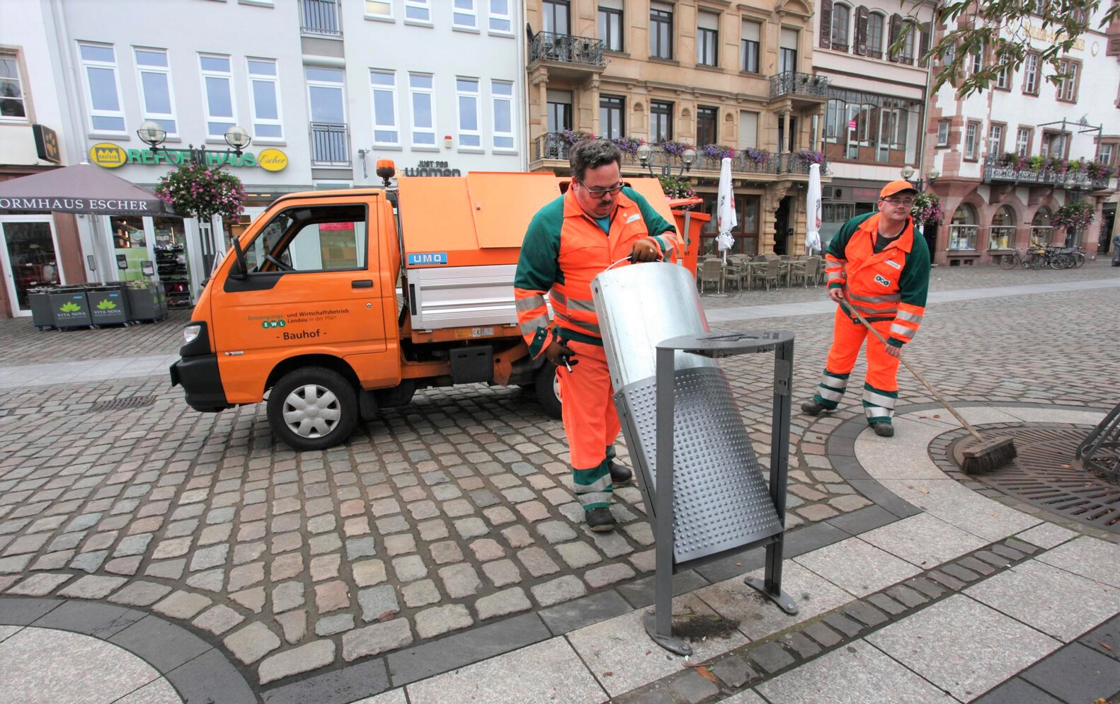 Unterwegs für eine saubere Stadt: Dreizehnmal in der Woche leeren Mitarbeiter des EWL-Bauhofes die Abfallbehälter in der Fußgängerzone.