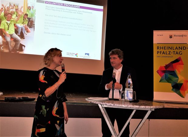 Bei der Organisation und Durchführung des Rheinland-Pfalz Tages sei jede helfende Hand willkommen und werde gebraucht, sagte Steffen Jung, Oberstudiendirektor des Trifels Gymnasiums Annweiler, der die Leitung des Volunteer-Programms übernommen hat, und dabei eng mit Brigitte Rottberg, Projekt- und Eventmanagerin, zusammen arbeitet.