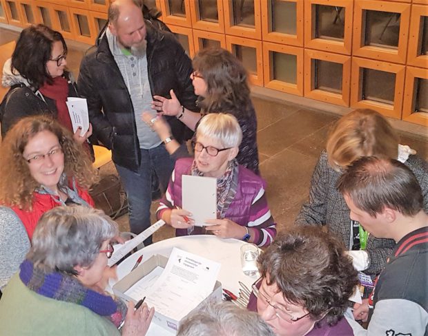 Andrang am Info-Tisch, wo Loni Haus, Gabi Spies und Brigitte Rottberg individuelle Fragen beantworteten, und wo man sich gleich als Volunteer anmelden konnte.