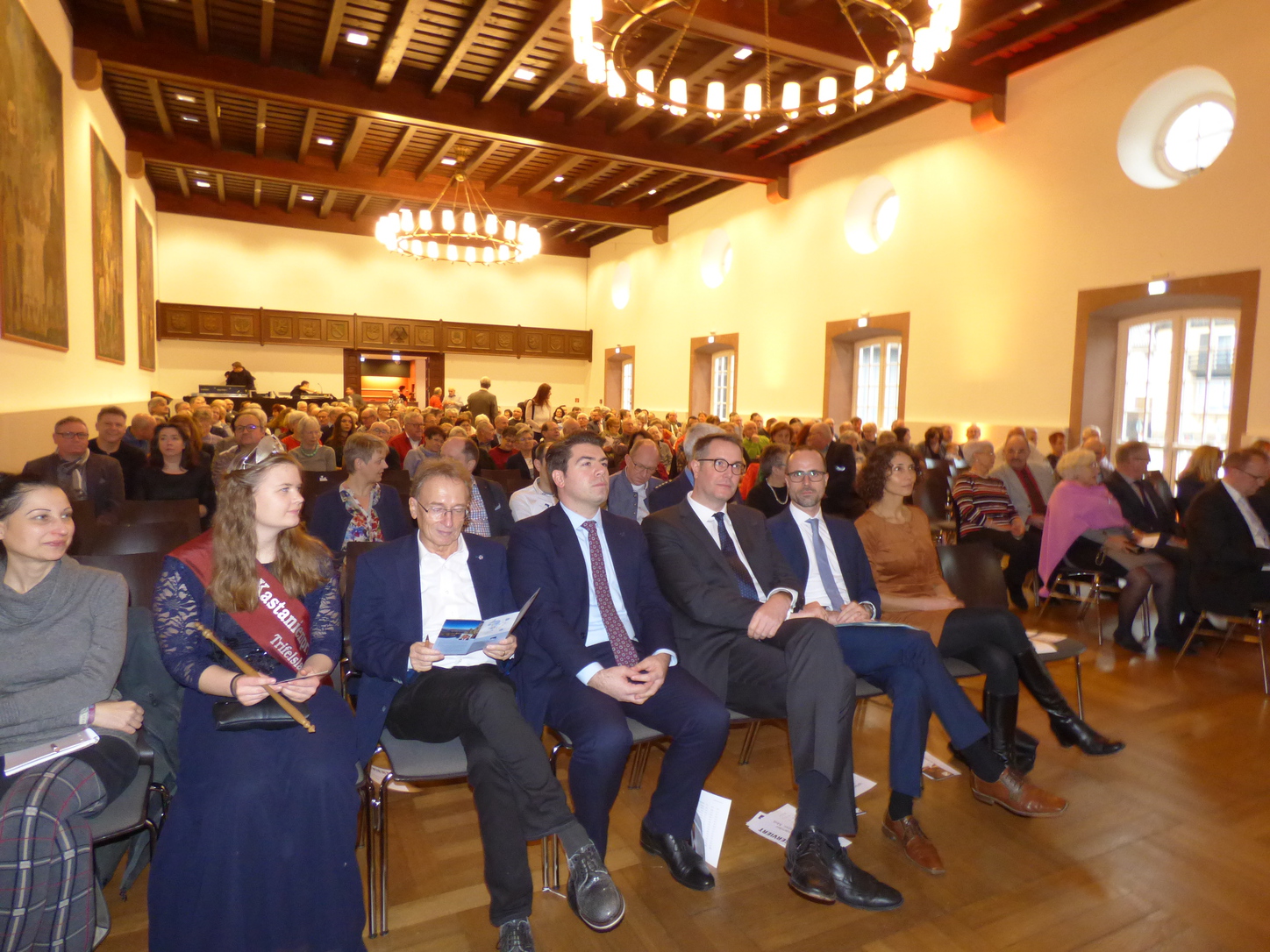 An ganz unterschiedlichen Stätten hatte er die Neujahr-Treffs durchgeführt: Zunächst im Alten Hohenstaufensaal – als dieser dann nicht mehr zur Verfügung stand, in der Aula des Trifelsgymnasiums und schließlich im neu gebauten Hohenstaufensaal, wo jetzt auch dieser Empfang abgehalten wurde.