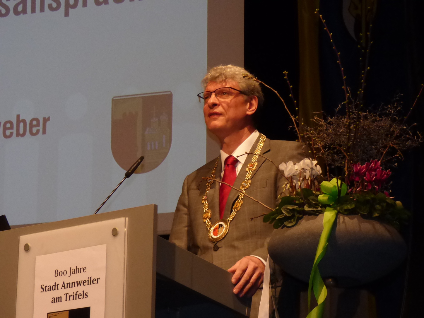 800 Jahre Annweiler (Annweiler ist nach Speyer die zweitälteste Stadt der Pfalz) und natürlich der Rheinland-Pfalz-Tag waren Themen, auf die der Bürgermeister speziell einging.