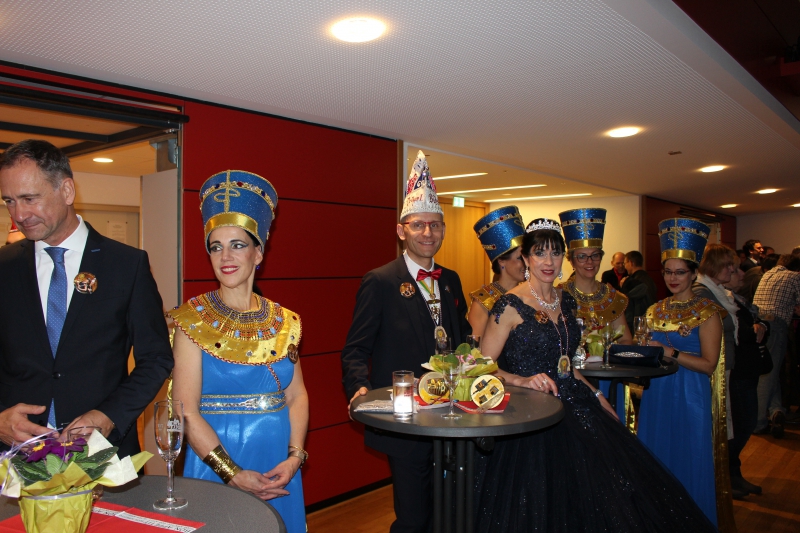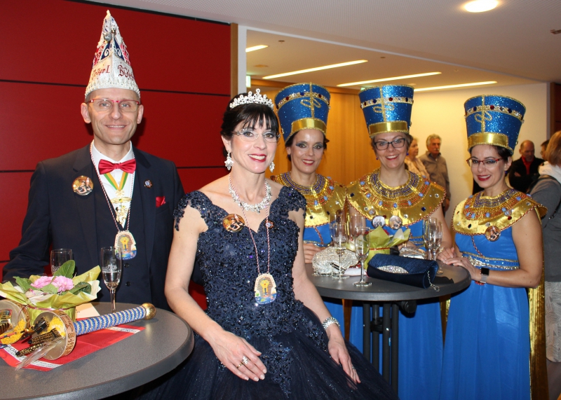 Nicht fehlen beim Neujahrsempfang durfte eine Abordnung des Karnevalvereins BiKaGe, der am 6. Januar Bürgermeister Tielebörger die Stadtschlüssel und die – wie immer leere – Stadtkasse abgeknöpft hatte. Hoheitlichen Glanz verbreiteten das Prinzenpaar Sabine IV und Volker I. mit Hofdamen im Pharaonen-Look gemäß dem Kampagnen-Motto „Motto „BiKa-Helau ruft uff em Nil, de Pharao un´s Krokodil“.