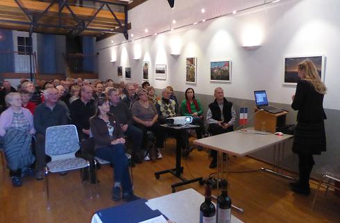 Nach einem Gläschen „Bordeaux“ zum Auftakt stellte die in Bordeaux geborene Referentin kurz ihre weltberühmte Heimatregion dar, ehe sie wichtige Etappen der Geschichte des Nachbarlandes ansprach – unterhaltsam, humorvoll, kurzweilig.