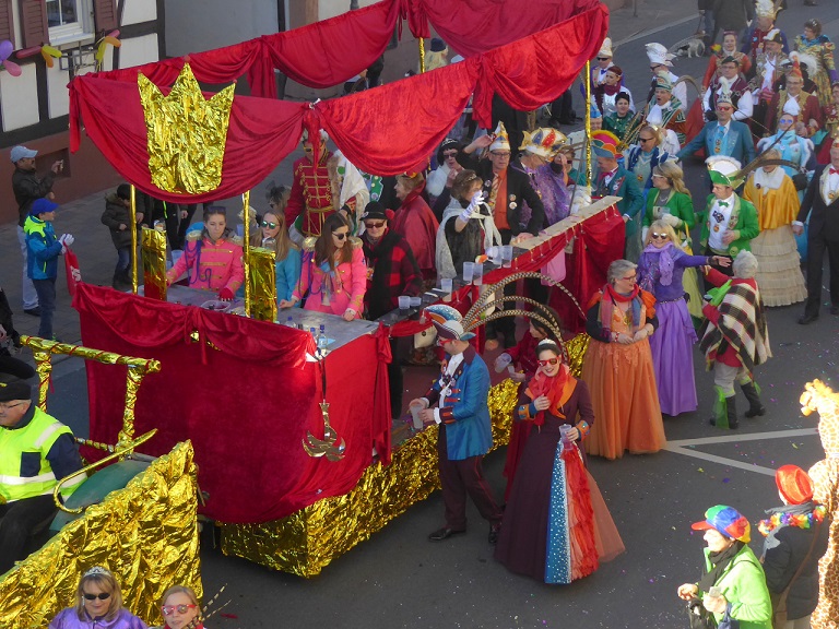 Der Fastnachtsdienstag Nachmittag sieht dann eine wahre Siegesparade der närrischen Monarchie über die nüchterne Republik. Die Hauptstraßen werden zur „Via Triumphalis“ der Narretei, wenn sich ein lindwurmartiger Umzug durch sie hindurch wälzt, ehe er sich bei der Spielwiese im Töpferring auflöst, um reibungslos zum Ausklang in der Turn- und Festhalle überzugehen.