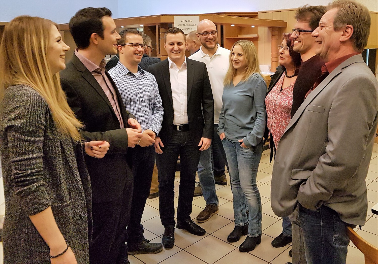 Gelöste Stimmung nach der Listenwahl. (v.l.: Lena Hirschinger, Christian Burkhart, Jürgen Neisius, Dominik Rubiano-Soriano, Benjamin Thorn, Romy Schwarz, Michaela Burckschat, Benjamin Burckschat, Werner Kempf).